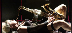 Plus que de théâtre, c’est un music-hall hétéroclite dont il s’agit. Après s’être vu refuser les droits d’auteur pour «L’Opéra de Quat’Sous» de Berthold Bretch, Robert Lepage s’est rabattu sur «L’Opéra du gueux» de John Gay, une satire politique du 18e siècle. Repensée et transformée, la pièce est devenue «The Busker’s Opera». De l’œuvre originale, les personnages sont demeurés: autour de Macheath le voyou, gravitent les richissimes Peachum, deux amantes amères et éplorées, le père politicien de l’une d’elles et une ancienne maîtresse prostituée. Mais plutôt que le milieu de la pègre, l’univers du showbiz musical est dépeint, et écorché au passage, dans cet opéra rock contemporain.