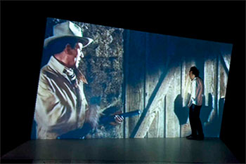Cette générosité trouve écho chez Nicolas Bouchaud, prêtant corps et voix au critique dans la sobre mise en scène d’Éric Didry. Quelques accessoires et les images du film culte de Daney, Rio Bravo, meublent le plateau; l’espace, autrement, est entièrement rempli de la parole qui se déploie, de la performance vive, suave de l’acteur. Bouchaud, dans la jubilation du jeu, devient à son tour passeur, conteur, griot, comme souhaitait le faire Serge Daney.