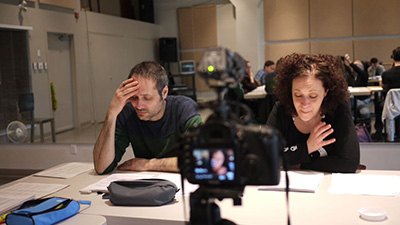 C'est au metteur en scène Alexandre Fecteau que Danis a offert de diriger les répétitions. Fecteau, reconnu pour sa capacité à remettre en cause les codes classiques de la représentation théâtrale, vient de se voir nommer récipiendaire du Prix de l'oeuvre de l'année dans la Capitale-Nationale pour sa pièce de théâtre Le NoShow, prix qui lui a été remis par le Conseil des arts et des lettres du Québec il y a quelques jours à l'occasion de cette 16e édition du Carrefour. Il est, en quelque sorte, le chef d'orchestre de Séjour et c'est sur lui que repose la lourde tâche d'établir le rythme de la répétition pour que, d’abord, elle soit intéressante pour le spectateur et qu’elle devienne productive pour les comédiens afin d'arriver le plus rapidement possible à un produit final en vue de la captation radiophonique. On peut d'ailleurs sentir une certaine fébrilité s'installer peu à peu, attribuable à la date de tombée imminente et au temps qui passe si vite en répétition. Une nervosité qui envahit le spectateur à un certain moment : arriveront-ils à monter cet immense radio-roman d'un peu plus d'une heure en seulement neuf rencontres?