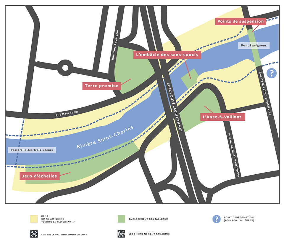 En taxi ou Uber : demandez à votre chauffeur le parc de la Pointe-aux-Lièvres. Notre point d’information sera là.