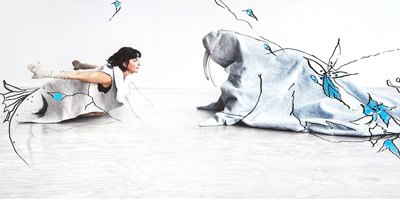 EMMAC Terre MarineConçu par l’artiste multidisciplinaire Emmanuelle Calvé, EMMAC Terre marine s’inspire du conte inuit La Femme squelette. Avec son caractère féérique et visuellement poétique, la pièce met en scène des rapports inusités entre le mouvement du corps-marionnette et celui de la danse-théâtre. Une rencontre rare de créateurs exceptionnels!