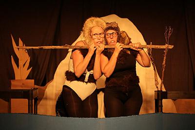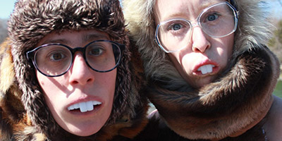 Dans une mise en scène d’Anne Lalancette (également responsable des éclairages et de la traduction des quelques phrases dites en français qui succédaient chaque fois à leur équivalent en anglais), les interprètes et marionnettistes Maggie Winston et Rae-Anna Maitland évoluent dans un décor aux allures de bric-à-brac, avec, notamment, des rideaux bleus et beiges. L’un de ces derniers sert également d’écran pour des projections qui ressemblent à certains vieux documentaires éducatifs des années 1960-1970. Avant le début de la représentation, des chants d’oiseaux se font entendre. Surgissent par la suite deux curieuses créatures vêtues de casques de poils, de lunettes, de dents protubérantes et des bottes d’hiver. Les deux complices transportent des branches de bois qu’elles rongent à l’occasion, et se permettent à l’occasion d’interagir directement avec l’auditoire.