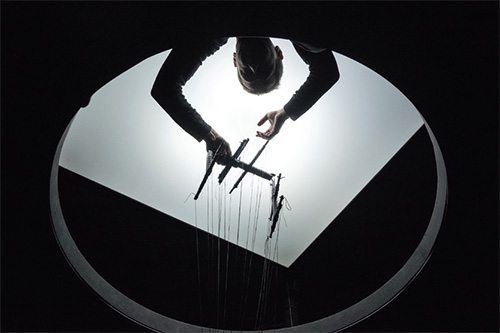 Formé à l’École supérieure nationale des arts de la marionnette de Charleville-Mézières et directeur du TJP Centre Dramatique National Strasbourg-Grand Est depuis 2012, Renaud Herbin a l’habitude de concevoir ses pièces à partir d’œuvres dramatiques ou littéraires. Cette fois, il s’inspire du Dépeupleur de Samuel Beckett pour créer Milieu, un spectacle de marionnette à fils sans paroles qui explore la relation entre le corps et la gravité.
