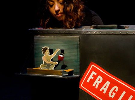 La mise en scène de Gerard Stropnicky offre d'ailleurs plusieurs beaux moments d'émotion. On ne quitte pas des yeux la petite Shoshana lorsqu'elle extrait une échelle de la valise de scène (la si lourde et si mal nommée « light box ») et entame son ascension, ou lorsque la poupée chute de son trapèze. Surtout, on sourit lorsque des enregistrements d'un numéro de marionnette joué par son père sont projetés sur une petite porte ou un rideau de sable, image forte de l'impermanence de la mémoire et de l'art.