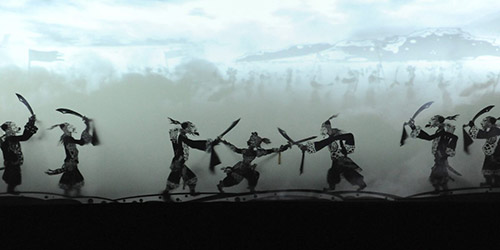 Laissant entrevoir les douze marionnettistes derrière l’écran, la projection permet d’apprécier la manipulation virtuose des silhouettes et conserve ainsi l’essence du spectacle original.