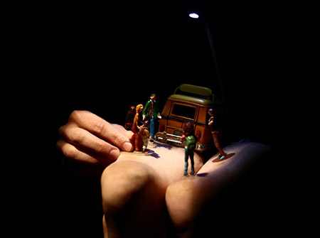 Techniques : corps, figurines miniatures, objets et projections vidéo