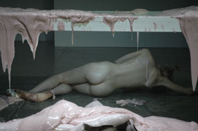 Sur scène, une Ève future émerge d’une chrysalide visqueuse. Puis, évoquant les « reines qui ont donné leur tête au peuple », Silvia Costa joue une Juliette sans Roméo, asperge un glaive de Chanel no 5, se drape d’un linceul blanc marqué d’une croix noire et rencontre son double noir : autant de dés lancés sur la scène d’un monde affecté, autant d’images puissamment évocatrices d’un théâtre du féminin, où des mâles anonymes débarquent en meute pour se livrer à une bastonnade.