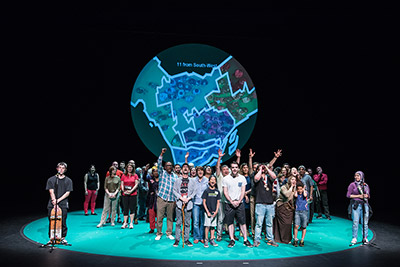 100% Montréal - spectacle d'ouvertureQui sont vraiment les Montréalais ? Que pensent-ils ? Devant nous, 100 citoyens représentent 100 % de la population. Hommes, femmes ou trans, adultes, enfants ou ados, athées, musulmans ou Juifs, ils cartographient Montréal dans un exercice d’autoreprésentation vibrant et jubilatoire.
