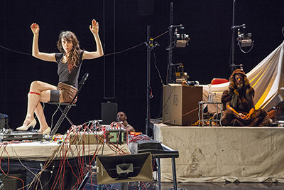 Entrez, nous sommes ouvertsEt si tous ces boutons sur lesquels appuyer, ces connexions mystérieuses qui s’établissent, ces infimes déclencheurs, constituaient le fil d’un spectacle ? Voilà le pari saugrenu relevé par l’épatant Bureau de l’APA, collectif qui nous a éberlués avec La Jeune-Fille et la mort en 2013. À l’ère des créations multimédias sursophistiquées, place aux plaisirs candides du bric-à-brac et de la déconstruction.