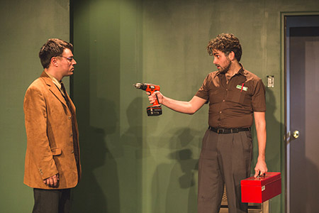 Tout d’abord, le texte de St-Laurent-Sénécal, est habilement construit et ne va pas sans rappeler le style comique fataliste du Dîner de cons. On croit au début à une simple comédie slapstick. Or, les méandres de la pièce confondent le spectateur et réussissent efficacement à le surprendre, pour son plus grand plaisir. Une réplique anodine en apparence trouve son écho quelques scènes plus tard ; rien n’est dit ou fait au hasard alors qu’on croit a priori le contraire.